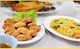 เนื้อปูผัดผงกระหรี่ และ ทอดมันปลากลาย |